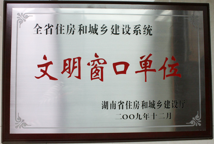 2009年12月被湖南省住房和城鄉建設廳評為“全省住房和城鄉建設系統文明窗口單位”